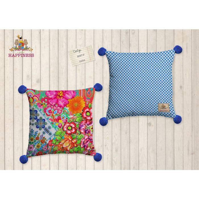 Happiness gevuld kussen 48x48cm (1 stuk) polyester nr:8057 multi