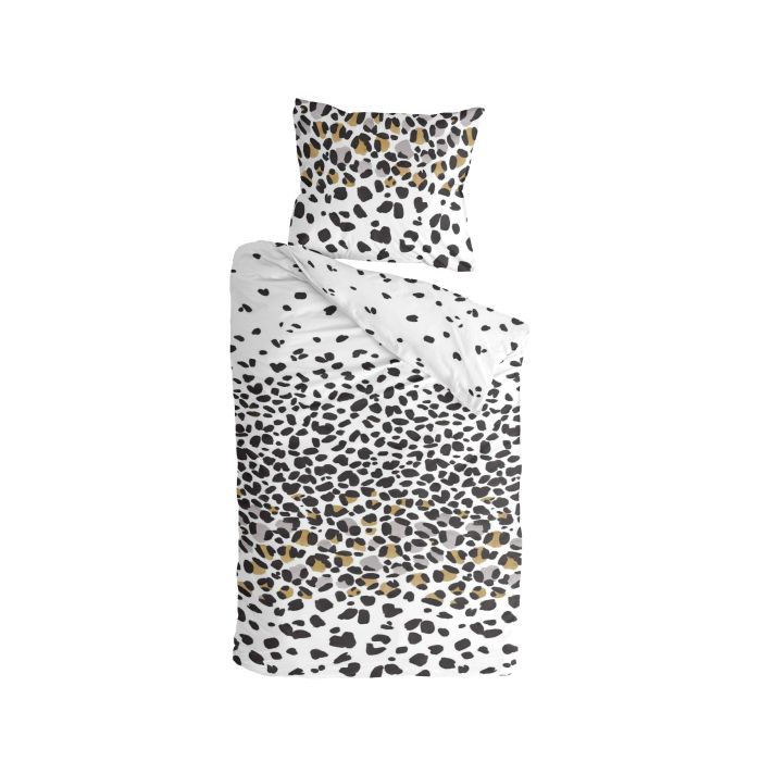 Leopard-prints zijn helemaal hot! Met het Jungle Rocks dekbedovertrek waan je jezelf zo de jungle in. De luipaard print op een witte ondergrond loopt van drie kleuren over naar twee kleuren. Je geeft met dit overtrek een trendy maar stijlvolle look aan je slaapkamer! Gemaakt van 100% katoen, een natuurlijk materiaal dat ademt en vocht absorbeert.