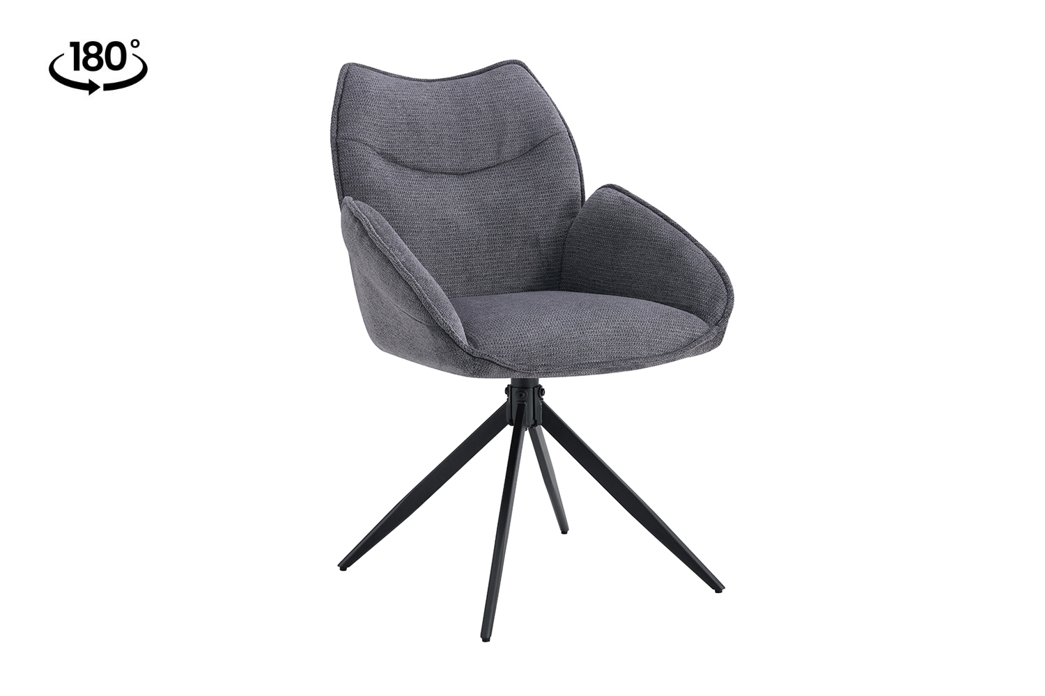 Mero Draaibare Eetkamerstoel met Armleuning – Stof – Donkergrijs