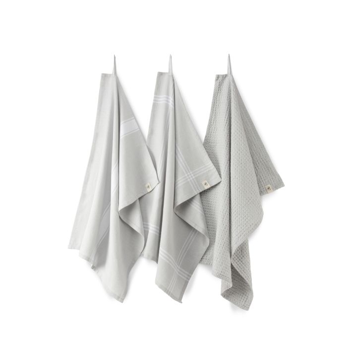 Blocks & Lines keuken- en theedoekenset 50x70cm lichtgrijs (3 stuks)
