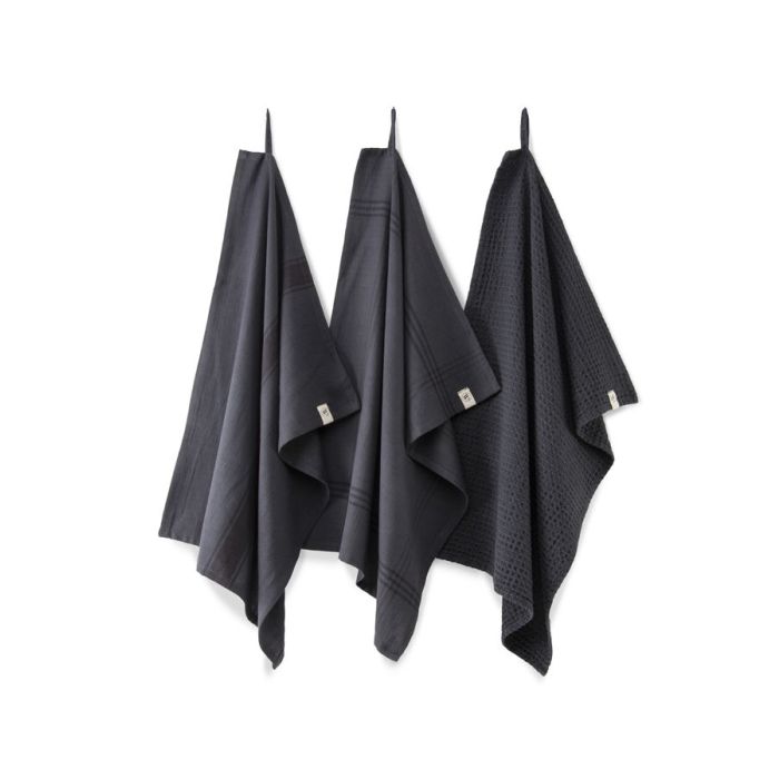 Blocks & Lines keuken- en theedoekenset 50x70cm off-black (3 stuks)